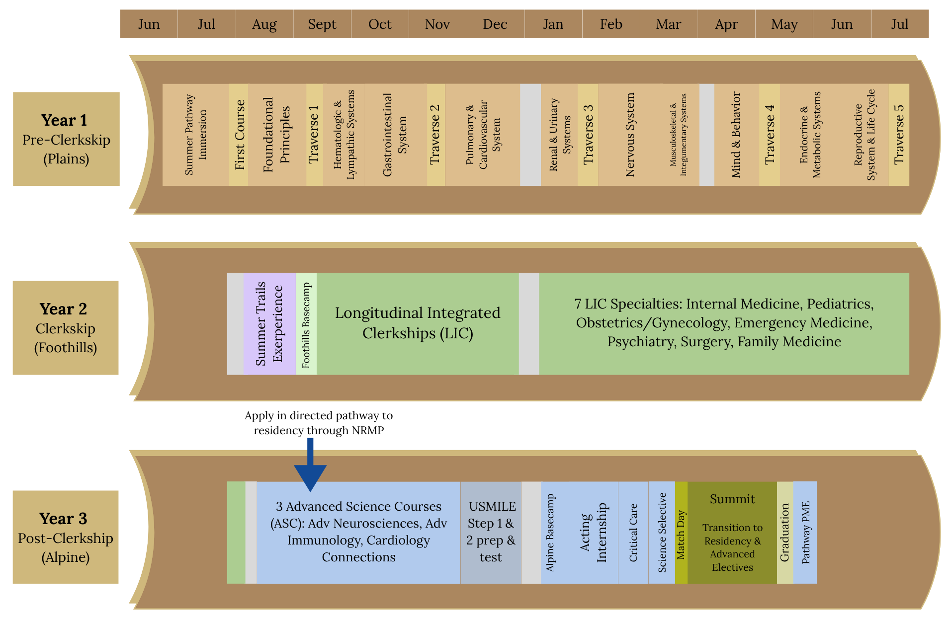 The Peak-to-Peak Pathway timeline is three years. For information about our general medical curriculum, please visit our curriculum page.