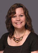 Aimee Bernard, PhD's photo framed in gold with a black background that has a spotlight shining behind the photo and a gold embellishment below the photo.