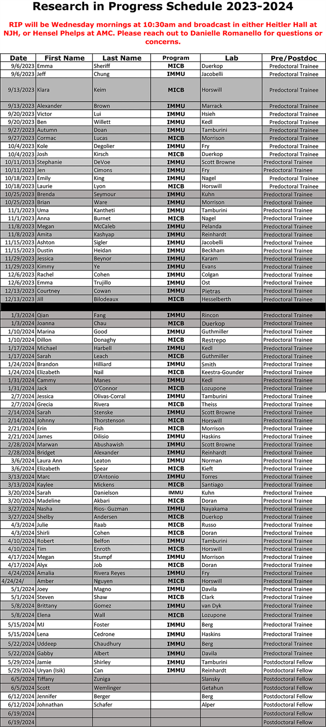 | 10/1/2025 | Elena | Wall | MICB | Lozupone |