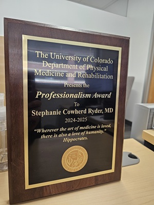 After Dr. Thornton presented his research, the department announced the recipients of the third annual PM&R Professionalism Awards. CU PM&R was honored to bestow Drs. Lauren Hinrichs-Kinney and Stephanie Cowherd Ryder with this recognition. These phenomenal faculty members were nominated by their colleagues for this honor.