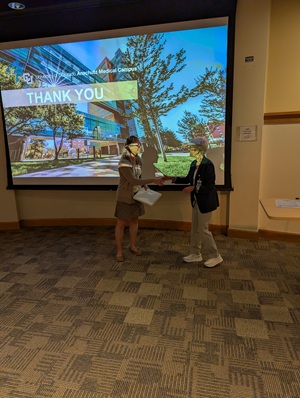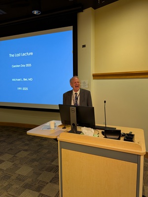 After lunch, the department welcomed our keynote speakers Drs. Pamela Wilson and Michael Blei. Both physicians are retiring after long and distinguished careers with CU PM&R and delivered their “Last Lectures” at Gersten Day. Dr. Wilson presented “The Yellow Brick Road – What does it take to be a good…” and Dr. Blei presented, “A Rehabilitation Carol.”